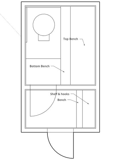 Tailored to your preferences, our 6'x10' sauna offers flexible door, stove, window, and bench placement.